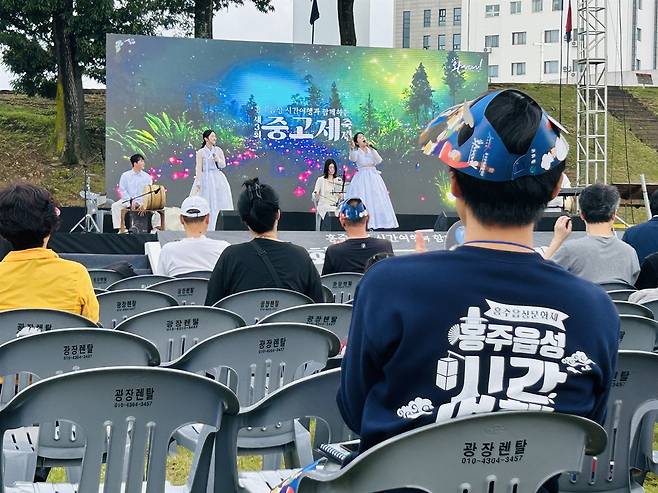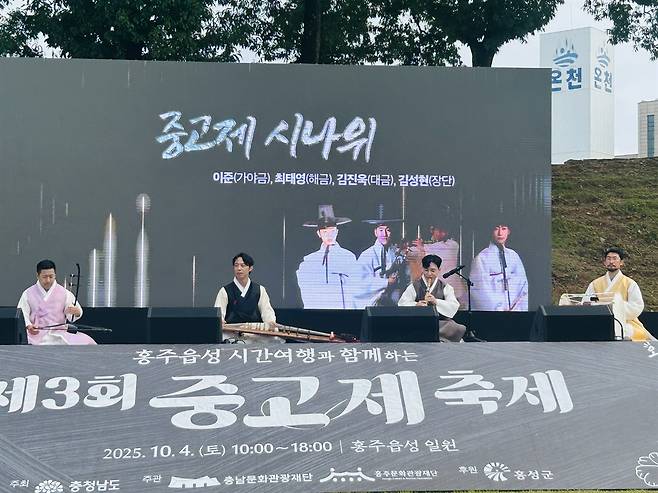 충남도가 주최하고 충남문화관광재단, 홍주문화관광재단이 주관하며 홍성군이 후원한 '중고제 축제'가 개막하면서 추석 연휴 둘째 날 고향을 찾은 귀성객들과 지역 주민들이 소중한 우리 소리를 감상했다.