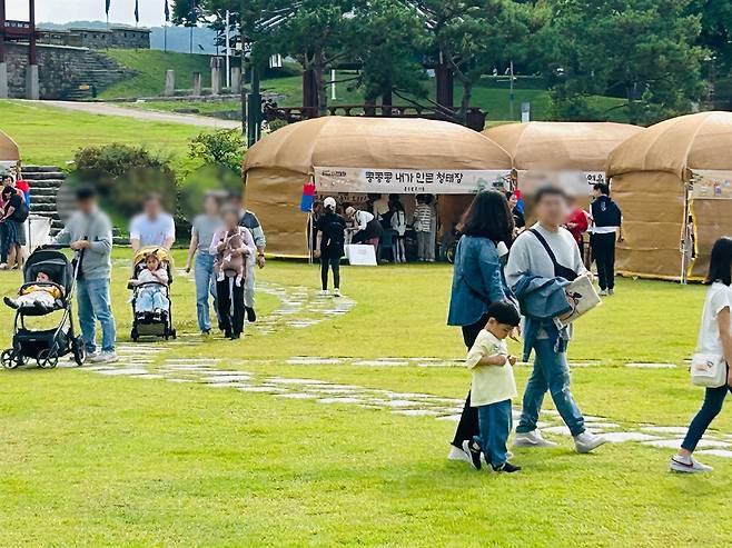 | ▲ 중고제축제가 열리는 홍주읍성에서는 가무악 공연외에도 전통의 결을 손끝으로 느끼며 남녀노소 누구나 즐길 수 있는 전통 놀이터를 비롯해 판소리 다섯 마당을 바탕으로 한 ‘소리의 조각을 모아라’ 등의 체험 행사가 진행됐다. |