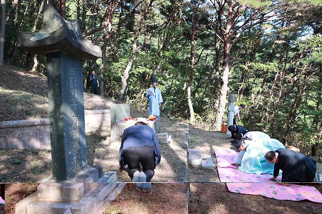 | ▲ 오태완 의령군수, 남저 이우식 선생 묘소 참배. |