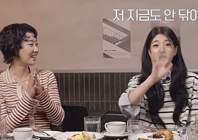 특히 수지는 세안 후에도 수건을 안 쓰지 않냐는 질문에 "지금도 그렇다"라고 말했다. "물기 위헤 스킨을 바른다. 수건이 안 좋다고 들었다”라고 부연했다. 혜리가 "그런데 (수건으로) 너무 닦고 싶지 않냐"라고 재차 묻자 수지는 "아니"라고 고개를 저었다.
