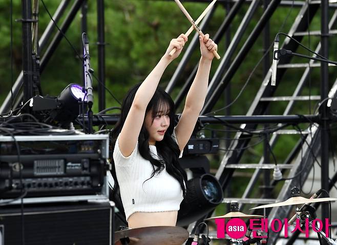 [텐아시아=조준원 기자]밴드 QWER(쵸단, 마젠타, 히나, 시연) 쵸단이 지난 27일 서울 마포구 난지한강공원에서 열린 글로벌 음악 축제 'ATA 페스티벌 2025'에 참석해 멋진공연을 펼치고 있다.