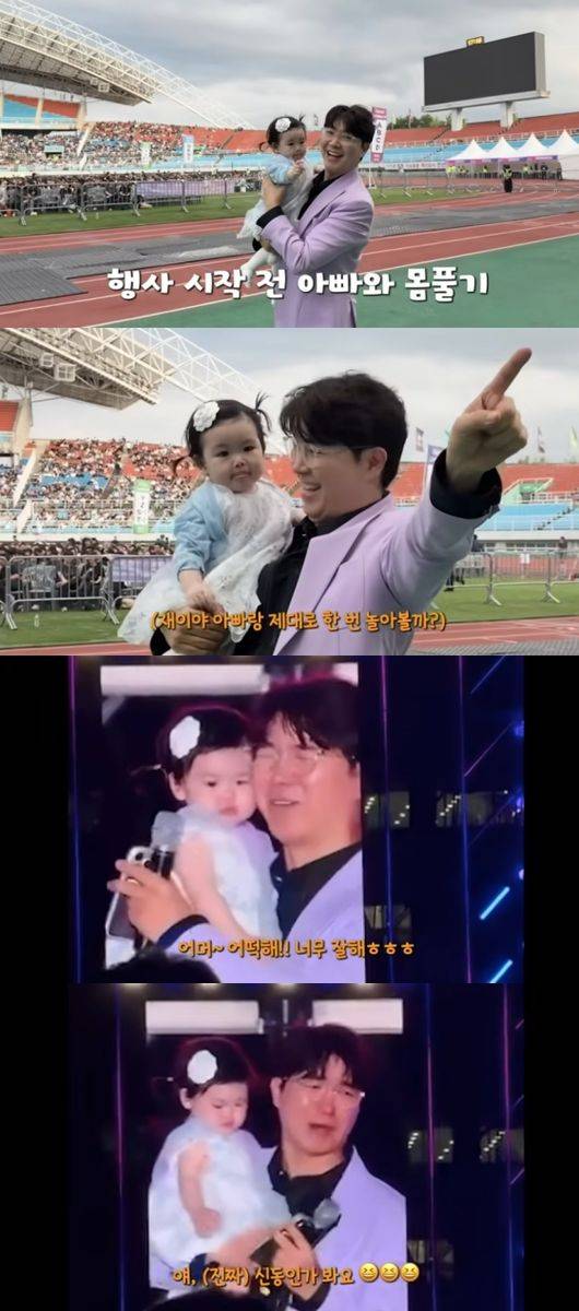 이후 박수홍은 딸을 안고 본 무대에 올랐다.