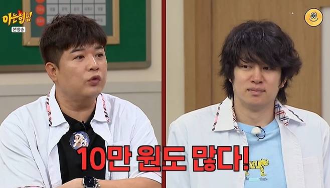 그러자 이상민은 "나 모르겠어. 한 30만 원?"이라고 했고, 신동은 "많은 것 같은데?"라고 놀랐다. 김희철은 "이 형 이제 돈이 넘쳐나나 봐"라고 말하기도. 이상민이 연신 "센 거야? 그걸 몰라"라고 연신 묻자 신동은 "내 기준에 10만 원 주면 많다고 생각할 것 같다. 난 첫째, 둘째 똑같이 줬다"라고 밝혔다.