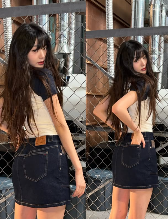 사진 속 장원영은 포근하고 발랄한, 캐주얼한 분위기를 살린 니트와 심플한 라운드 넥 티셔츠를 걸쳐 풋풋한 느낌을 더했다.