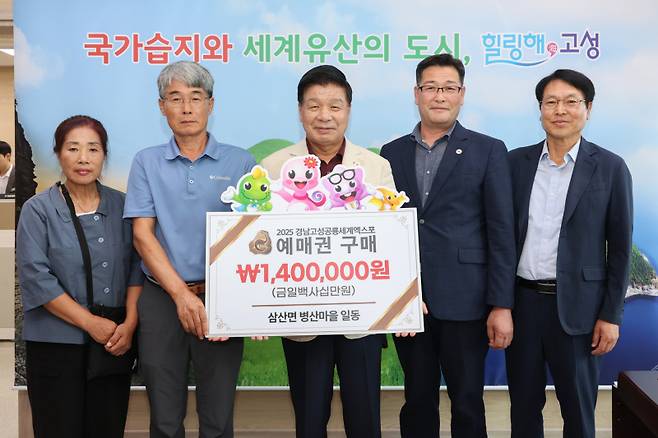삼산면 병산마을(이장 서진교)이 '2025경남고성공룡세계엑스포'의 성공적인 개최를 위해 140만원 상당의 예매권을 구매했다.