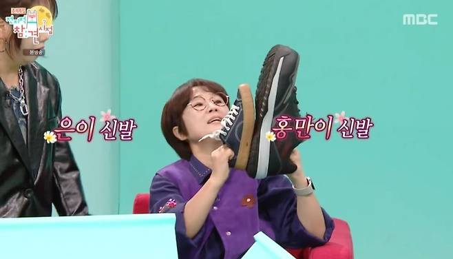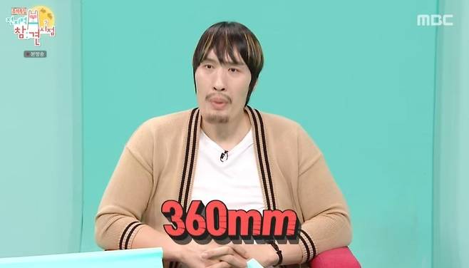 최홍만 신발은 한 손으로 들기도 버거운 사이즈였고, 풍자는 "신발이 현희 언니 상반신 정도인데?"라고 말하기도.