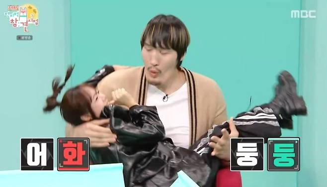 홍현희는 최홍만에게 "저도 '우르르 까꿍' 해달라"라고 요청했다. 이에 최홍만은 아기를 안듯 홍현희를 안았고, 체험에 만족한 홍현희는 이영자에게 추천했다. 최홍만의 '우르르 까꿍'을 체험한 이영자는 "안전벨트 찬 디스코 팡팡 같다"라고 신기해했다. 양세형은 "홍만이 형이 그냥 큰 게 아니라 힘 자체가 좋다"라고 했지만, 이영자는 "나 하고 나서 허억거린다"라고 말했다. 이에 양세형은 "예전에 밥샙이랑 경기할 때 느낌이냐"라고 말하기도.
