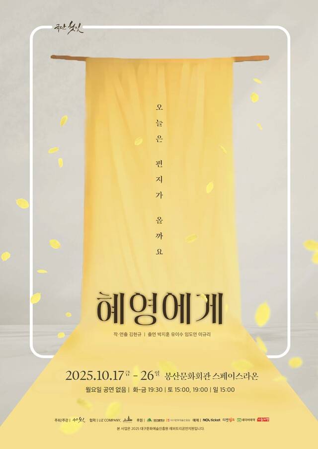 극단 헛짓의 대표 레퍼토리 연극 '혜영에게'가 오는 17일부터 26일까지 대구 봉산문화회관 스페이스라온에서 무대에 오른다.