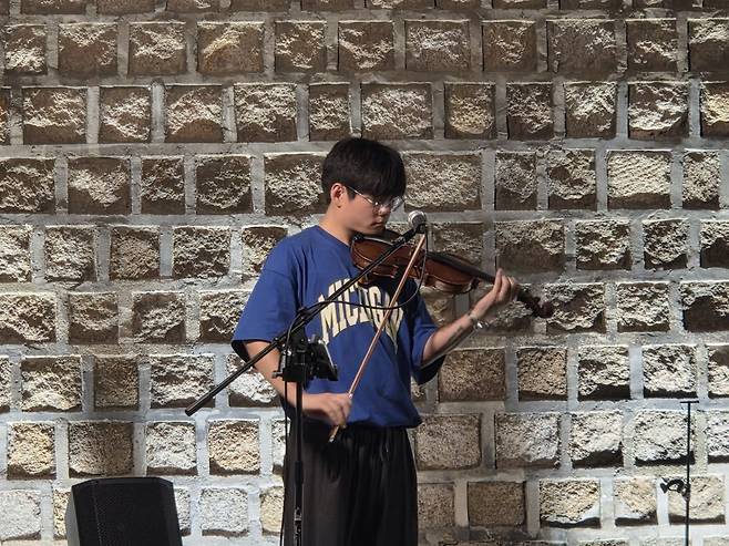 지난 3일 저녁 연휴로 북적이는 서울 중구 덕수궁 돌담길. 불빛이 켜진 길가에 울려 퍼진 바이올린 소리에 시민과 관광객이 발걸음을 멈췄다. ‘어메이징 그레이스’ ‘십자가의 전달자’ ‘온 맘 다해’가 이어지자 맞은편 돌의자가 관객으로 가득 찼다. 연주자는 거리에서 복음을 전하는 청년 김성은(27)씨였다.