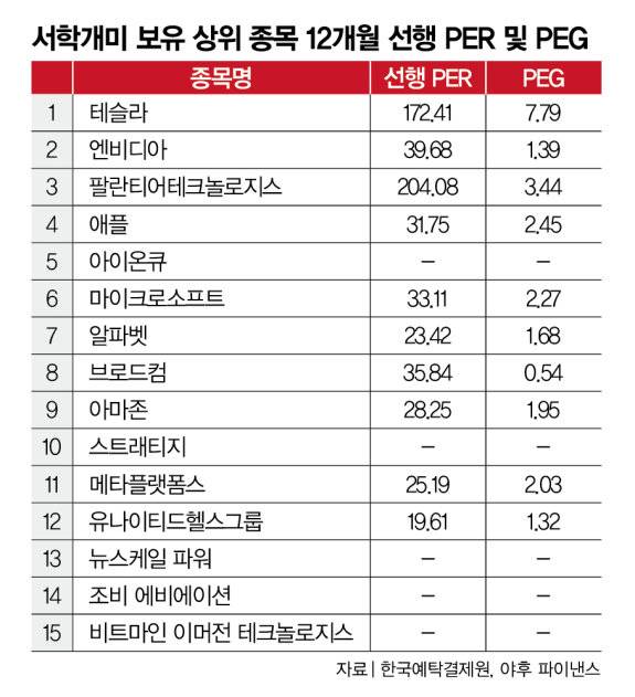 ‘서학개미 픽' 모두 선행 PER 20 이상