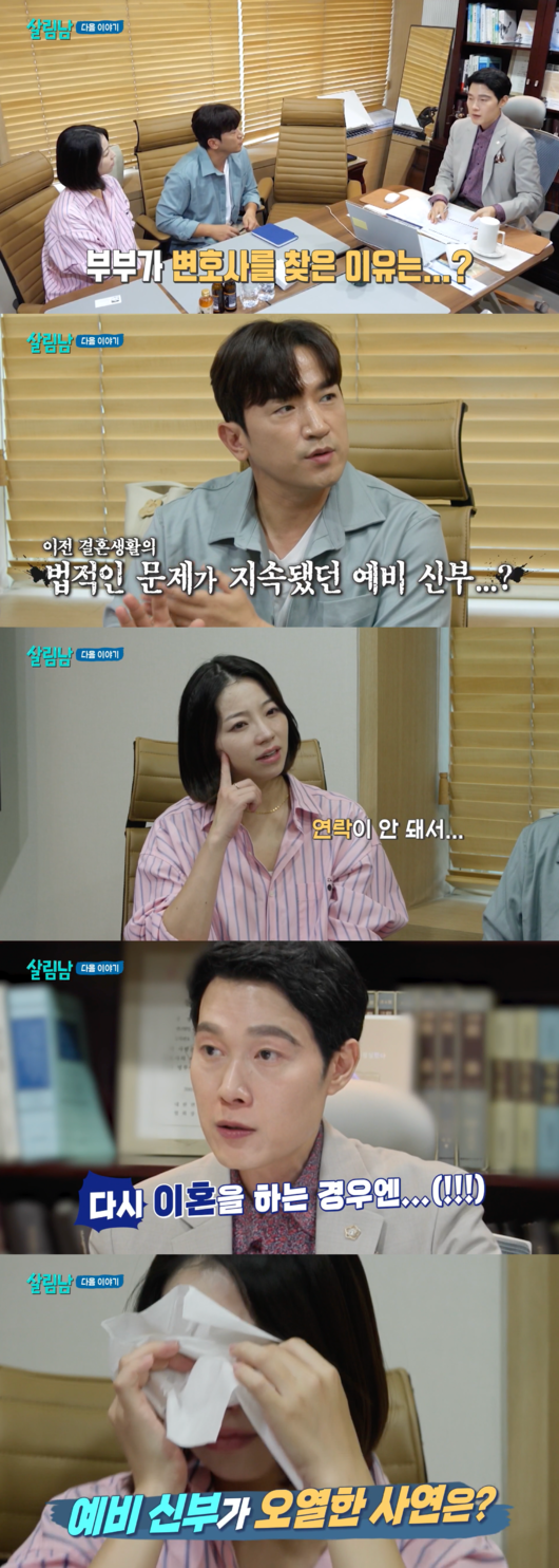 이에 예비신부 이아미 씨는 “연락이 안 된다”고 했고, 이민우는 “돈까지 빌려줬다”고 말했다. 예비 부부의 이야기를 듣던 변호사는 “다시 이혼하는 경우에는..”이라며 법적 상담을 이어갔고, 이아미 씨는 눈물을 보여 안타까움을 자아냈다.