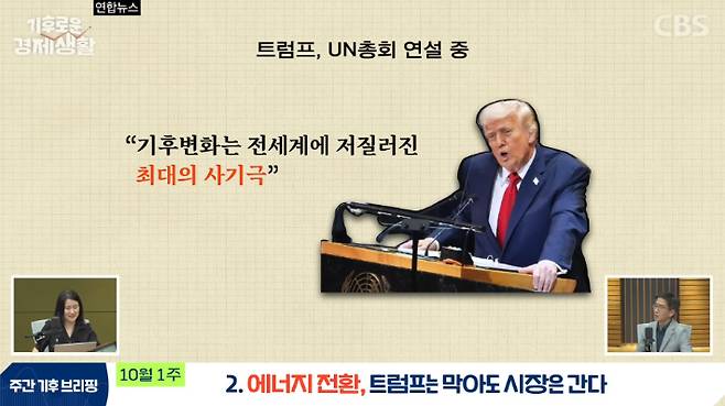 ◇ 최서윤> 도대체 왜 이러는지요. 뉴욕타임스에서 트럼프의 이민과 재생에너지에 대한 공격은 증거가 없고 기후 변화로 인한 사람들의 고통을 무시하고 있다고 강력하게 비판했어요. 영국 BBC도 이번 연설이 트럼피즘, 그 자체라고 지적하기도 했습니다.