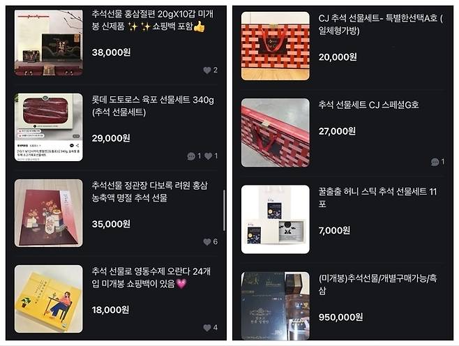 [중고거래앱에 올라온 추석 명절 선물. (사진=당근 캡처)]