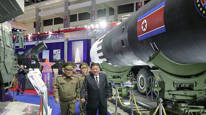 북한, 무기전시회 3년째 개최...신형 미사일 대거 공개