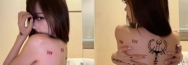 파격적인 탈의보다 눈길을 더욱 끄는 건 화려한 문신.