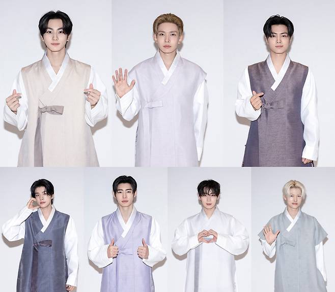 엔하이픈은 5일 정오 공식 SNS에 추석 인사 메시지를 올렸다. 한복을 갖춰 입고 엔진(팬덤명)에게 인사했다. 단정한 한복 맵시를 자랑했다.