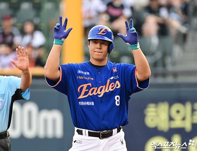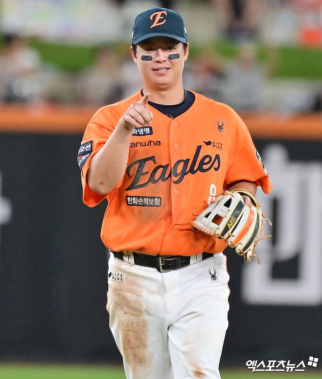 무엇보다 리그에서 가장 많은 수비 이닝을 소화하면서 만든 기록이라 더 대단하다. 노시환은 올해 총 1262⅓이닝을 소화, 수비 이닝 1위에 자리했다. 1200이닝 이상을 소화한 건 리그에서 노시환이 유일하다. 2위 박해민(LG)이 1179이닝, 3위 김주원(NC)이 1166이닝을 기록했다. 지명타자 선발 출전은 5월 21일 창원 NC전 단 한 번밖에 없다.