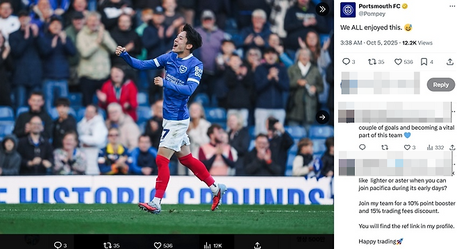 | ⓒ 포츠머스 구단 공식 X(트위터) 캡쳐 |