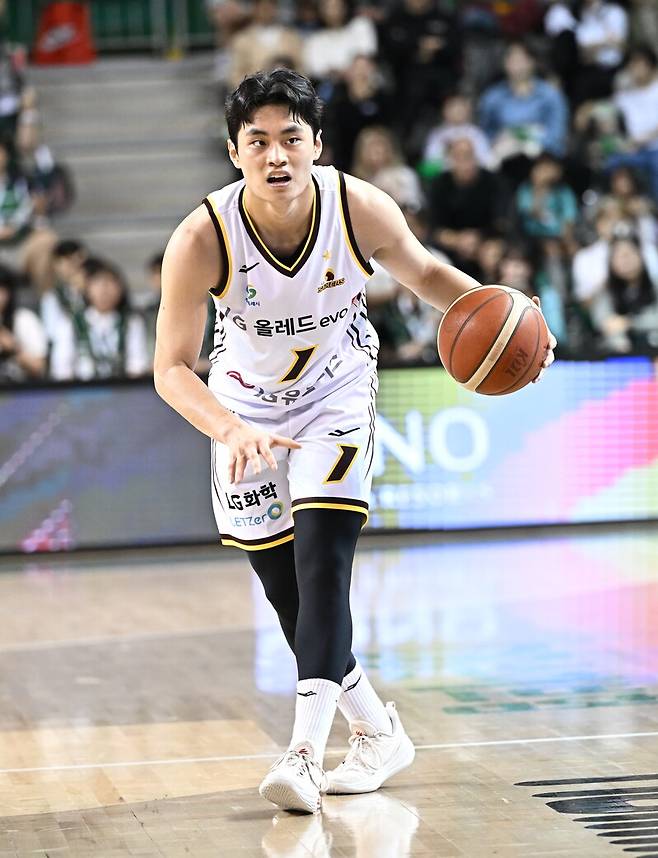 창원 LG는 5일 원주DB프로미아레나에서 열린 2025~2026 LG전자 프로농구 정규리그 경기에서 원주 DB를 82–79로 꺾었다. 값진 시즌 첫 승을 기록했다.