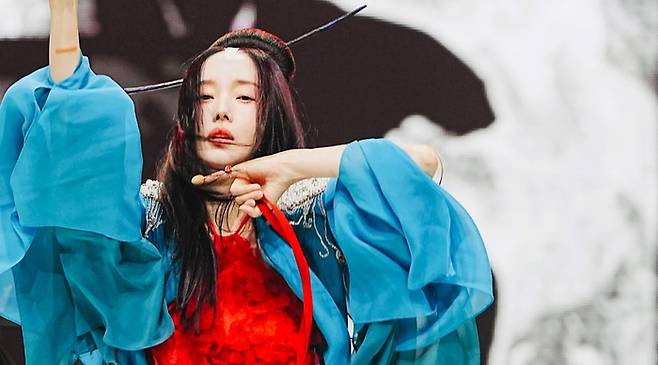 특히, 이번 ‘와’ 무대는 무용가 김시원의 지원사격으로 완성도를 최고조로 끌어올렸다. 한국무용과 현대적인 퍼포먼스가 결합된 무대는 웅장하면서도 동양적인 무드로 압도적인 에너지를 뿜어냈다. 사진 속 이정현이 입은 청록색 소매의 화려한 의상은 물론, 무대 연출에 대한 직접적인 참여가 알려지며 명곡판정단에게 큰 감동을 선사했다.