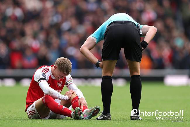 아스널 진짜 안 풀리네...'캡틴' 외데고르 이번엔 무릎 통증으로 조기 교체