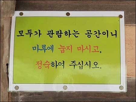 그 시대에는 어쩔 수 없는 환경이었다 해도 후대의 우리들이 찾아가서 그 내용을 알 수 있는 조치는 얼마든지 할 수 있는 것 아닐까? 한글 번역본을 툇마루에 놓아두거나(코팅해서 읽고 그 자리에 두라고 하거나) 따로 설명판을 만들어 두거나 아니면 누리집을 활용해도 좋을 듯하다.