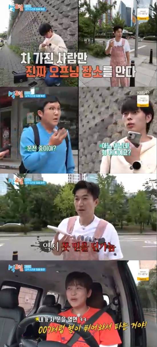 조세호는 김종민이 딘딘과 같이 있다고 하자 딘딘 차로 달려갔다. 조세호보다 먼저 뛰어갔던 이준은 앞자리 문이 열리지 않아 뒷자리로 이동했다.