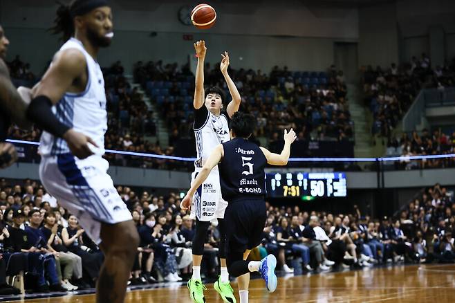 4일 알티리 치바와 치렀던 정규시즌 개막전에서 34분 32초를 뛰고 14점 7리바운드 2어시스트 2블록슛으로 활약했었던 이현중은 이번에도 두 자릿수 득점을 기록했다.
