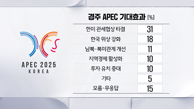 이달 말 경주에서 열릴 APEC 정상회의를 통해 어느 분야에서 가장 큰 효과가 있을 거라고 보는지도 조사했습니다.