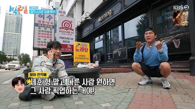 하지만 딘딘은 아랑곳하지 않고 이준에게 "비상등 켜고 오른쪽 문을 열테니 타라. 일단 한바퀴 돌면서 세호 형을 태울지 말지 고민해보자"라고 말했다.