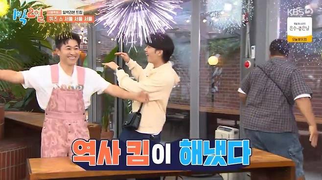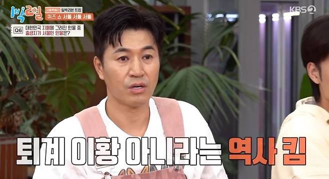 다음은 서울에 관련된 퀴즈 쇼가 진행됐다. 김종민은 경복궁에서 연쇄살인죄로 유배를 간 동물을 묻는 퀴즈에서 코끼리를 맞히며 역사킴의 진가를 발휘했다. 김종민은 "선물을 받았는데 인명사고가 나서 유배를 보냈다. 아마 섬으로 보냈을 걸"이라고 설명을 덧붙였다.