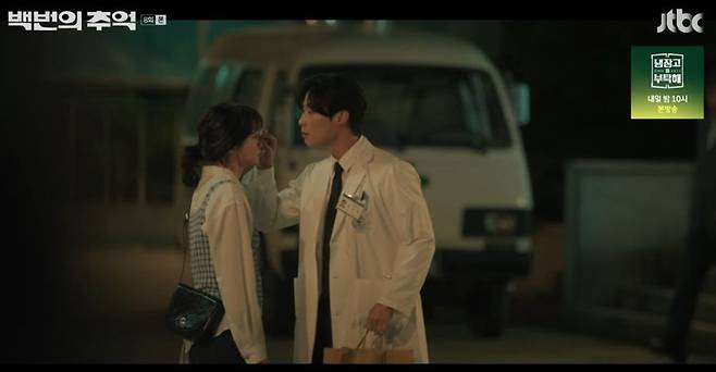 5일 JTBC '백번의 추억'에선 재필(허남준 분)을 만나고자 그가 일하는 병원을 찾는 종희(신예은 분)의 모습이 그려졌다.