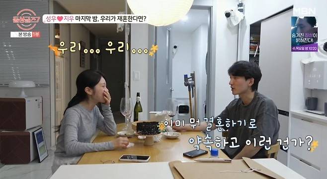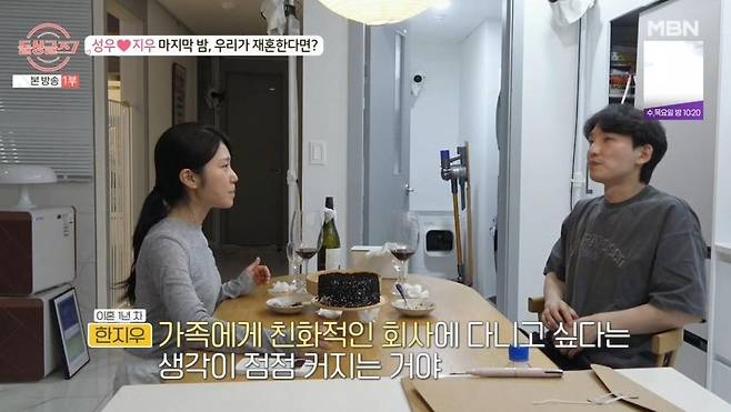 두 사람은 재혼과 2세에 대한 구체적인 계획에 대한 이야기도 나눴다. 지우는 "고민이 커지고 있다. 내 미래에 대한 불확실한 플랜이 많은데 가족에 대한 확실한 플랜을 갖고 싶다. 가족에게 친화적인 회사에 다니고 싶다는 생각이 점점 커진다"라고 털어놨다.