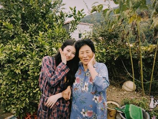 공개된 사진에는 수지가 외할머니와 함께 정겨운 시골길을 걷거나 다정히 손을 맞잡고 포즈를 취한 모습이 담겼다.
