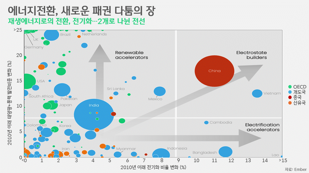 땅속에 매장된 자원의 유무에 따라 지위가 결정됐던 화석연료의 시대를 지나 기술과 자본이 있다면 어디서든 에너지의 생산이 가능해진 재생에너지의 시대를 맞이하면서 에너지전환은 글로벌 패권 다툼의 새로운 전구(戰區)가 됐습니다.