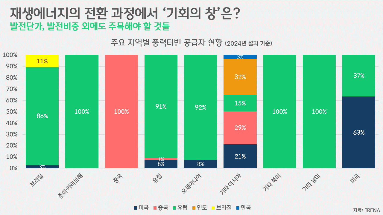 국내 풍력발전 시장 자체가 오랜 시간 사실상 멈춰있었던 만큼, 해상풍력 확대를 발판 삼아 다시금 풍력터빈 공급국가로서 이름을 올린다면, 우리나라의 에너지 안보 확립은 물론, 재생에너지로의 전환 과정에서 새로운 기회의 창을 열 수 있을 것입니다. 터빈을 지지하는 타워와 하부 구조물, 그리고 바다 위 풍력발전기에서 만들어진 전기를 육지로 옮기는 케이블 등 터빈을 제외한 풍력발전의 주요 요소에 있어선 이미 한국 기업들이 세계적으로 우수한 경쟁력을 보유한 만큼, 이는 그저 '꿈만 같은 이야기'는 아닙니다.