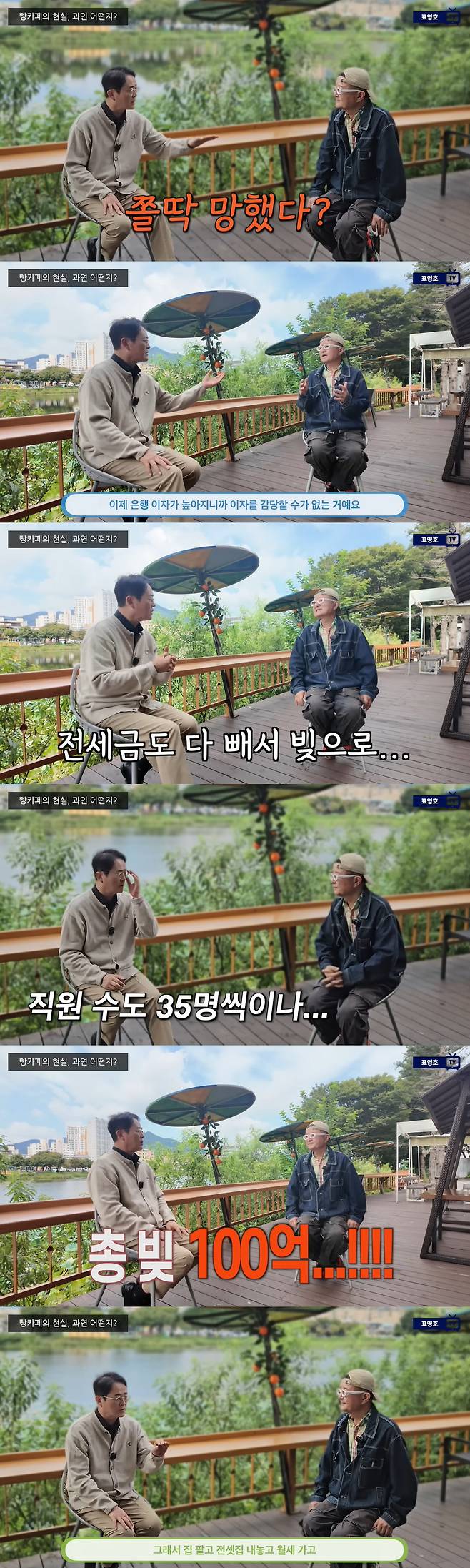 표영호는 "그런데 얼마 전에 보니 쫄딱 망했다고 하더라"라고 다시 물었고 김종석은 "은행 이자가 높아지니까 이자를 감당할 수 없더라. 감당하기 위해 집을 먼저 팔아 3년을 버텼다. 이후 전세금도 뺐다. 빵 카페 세 군데를 지키고자 하는 열망 때문에 그랬다. 직원이 35명인데 월급이 밀린 적은 없다"라고 답했다.