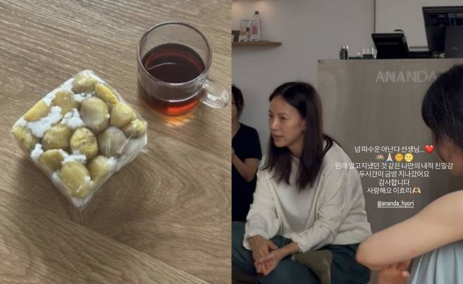특히 눈길을 끈 건 이효리가 제자들에게 직접 준비한 간식이었다. 사진에는 '대흥떡집' 상자와 함께 밤이 듬뿍 들어간 떡, 홍차 한 잔이 함께 놓여 있었다. 떡보다 밤이 더 많을 정도로 푸짐한 구성에 "이러면 반칙이지"라는 반응이 쏟아졌다. 이효리 특유의 세심한 배려와 정성이 돋보였다.