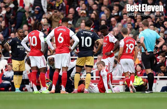 문제는 마르틴 외데고르만이 아니다. 웨스트햄전에서 선제골을 넣은 데클란 라이스도 허리 통증을 호소하며 교체됐다. 미켈 아르테타 감독은 "괜찮지 않다. 데클란 라이스가 직접 교체를 요청했기 때문이다. 라이스가 그런 말을 하는 건 매우 드문 일"이라며 우려를 감추지 못했다.