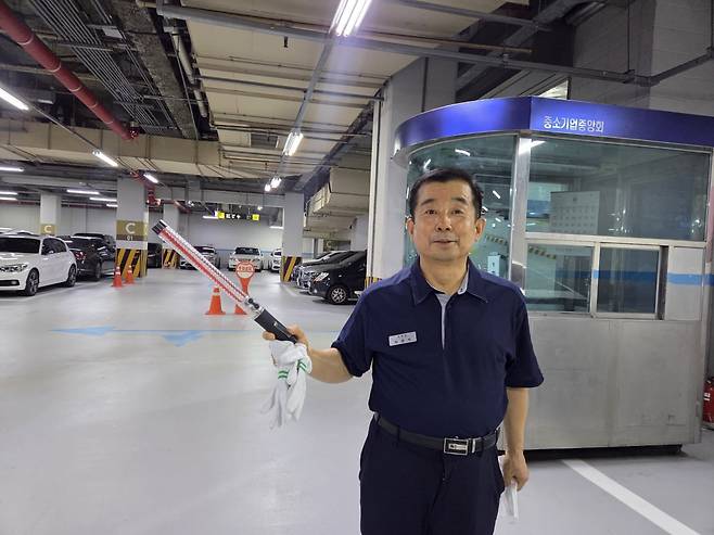 서울 여의도 중소기업중앙회 건물 지하 주차장에서 늘 밝은 미소로 차량을 안내하는 박정석 씨(65·사진). 그가 퇴근 후 주황색 경광봉을 내려놓고 한 줄 한 줄 써 내려간 시와 수필이 한 권의 책으로 나왔다.