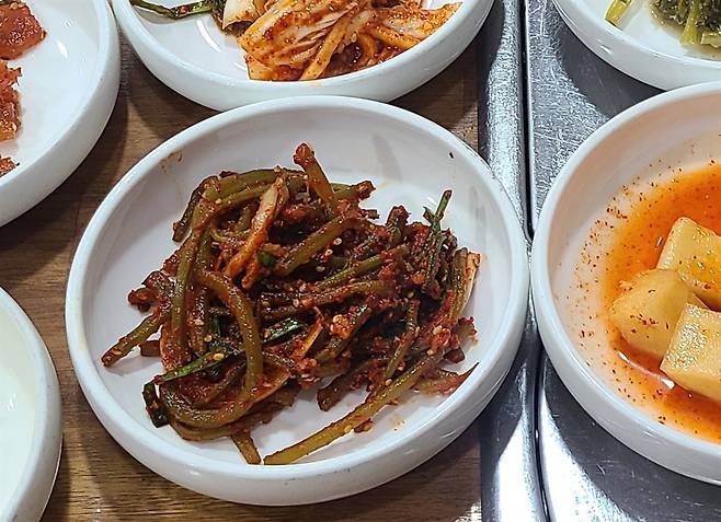 | ▲ 동네 식당에서 맛 본 고구마순 김치! 전라도 주인장의 손맛이 일품이었다. 나의 고구마순 김치도 이렇게 익어갈 것이다. |