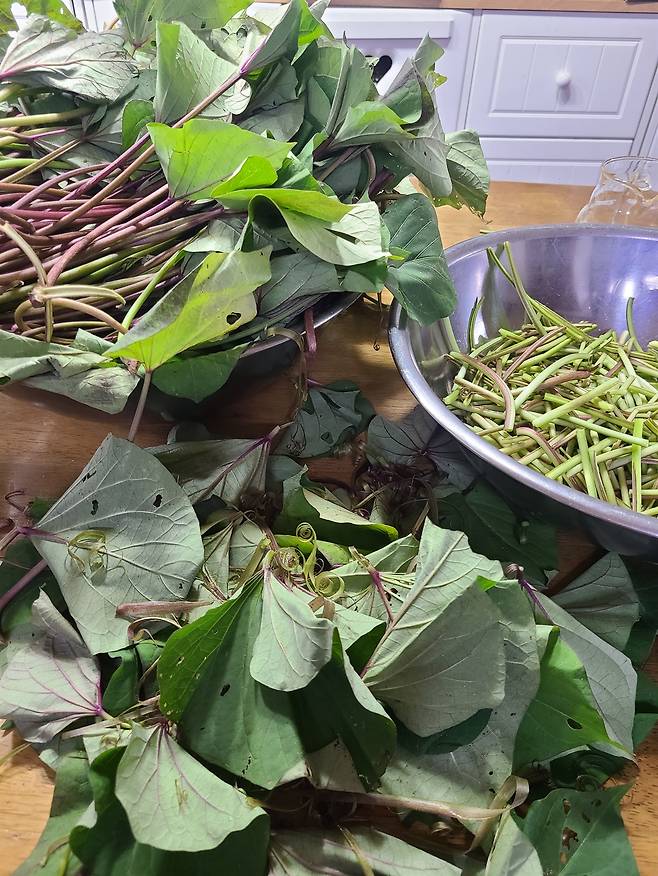 말려서 꼬들하게 먹어도 맛있다 하니 남은 것을 말려볼까 생각도 해 본다. 관심을 기울이니 9월에 전국적인 고구마순 축제가 열렸다는 것도 알게 되었다. 전라도 익산을 중심으로 곳곳에서 고구마순 관련 축제가 이어지고 있었다. 고구마순 김치 상품화 성공 덕분에 MZ 사이에서 고구마 김치가 인기라고 한다. 둘째 입에서 고구마 김치 담가 볼래요 라는 말이 괜히 나온 게 아니었다.