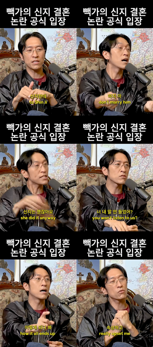 [OSEN=김채연 기자] 코요태 멤버 빽가가 신지의 결혼과 관련한 대중 반응에 속상한 마음을 토로했다.