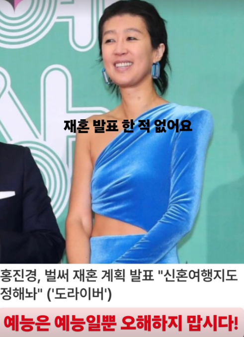 홍진경은 6일 자신의 SNS에 '홍진경, 벌써 재혼 계획 발표'라는 기사 제목을 캡처해 올리며 "재혼 발표한 적 없다"는 글을 올렸다.
