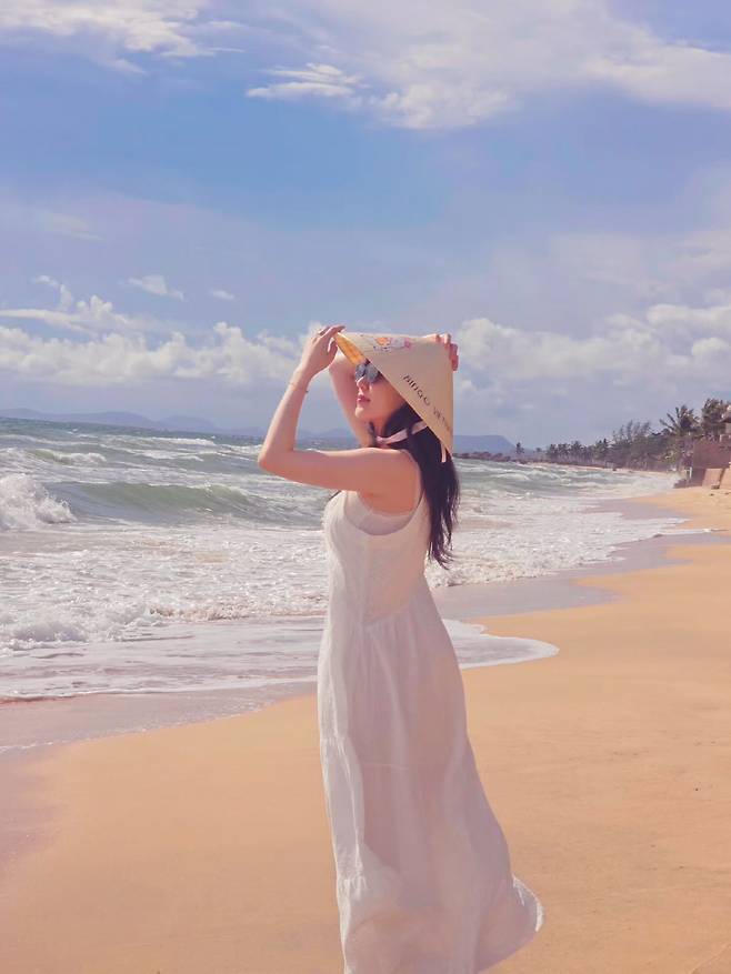또 모자와 선글라스를 착용한 채 맑은 하늘 아래 미소를 짓는 모습, 바닷가에서 하얀 원피스를 입고 여름 햇살을 만끽하는 장면도 담겼다.
