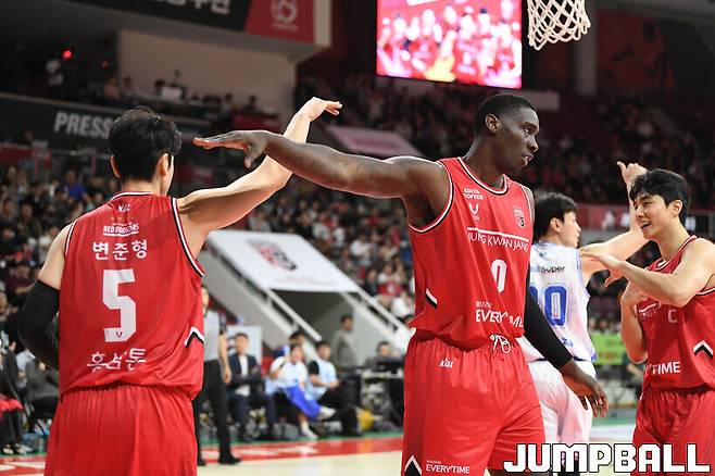 후반 들어서는 적은 실점과 함께 공격력이 폭발했다. 오브라이언트가 8점을 몰아쳤고, 변준형의 외곽포도 림을 갈랐다. 여기에 한승희, 김영현, 김종규, 박정웅 등의 고른 득점도 더해진 정관장은 64-46으로 점수 차를 벌리며 3쿼터를 마쳤다.