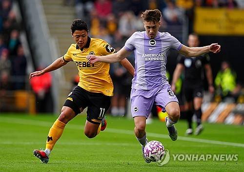 황희찬은 브라이턴전에서 4-2-3-1 전형의 왼쪽 윙어로 선발 출전해 후반 15분까지 경기를 소화했다.