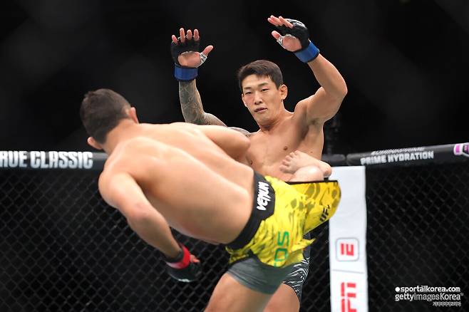 [SPORTALKOREA] 오상진 기자= 상대를 너무 얕본 것일까. 경기 초반 여유 있게 상대를 도발했던 '좀비 주니어' 유주상이 다니엘 산토스(브라질)에게 펀치를 맞고 TKO 패배를 당했다.