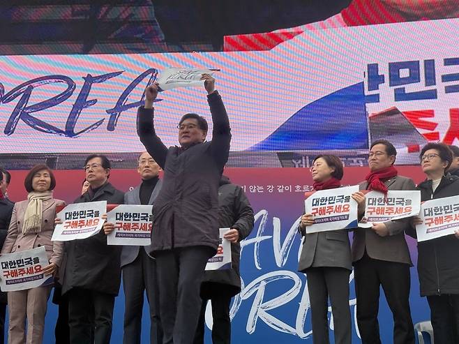 | ▲ 이헌승 국민의힘 의원이 3월 1일 극우 기독교 단체 세이브코리아가 주최한 집회에 참석해 손팻말을 들고 있다. |
