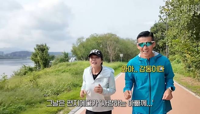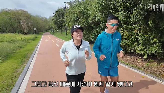 6일 유튜브 채널 '션과 함께'에서는 조혜련이 션과 함께 뛰는 모습이 공개됐다.